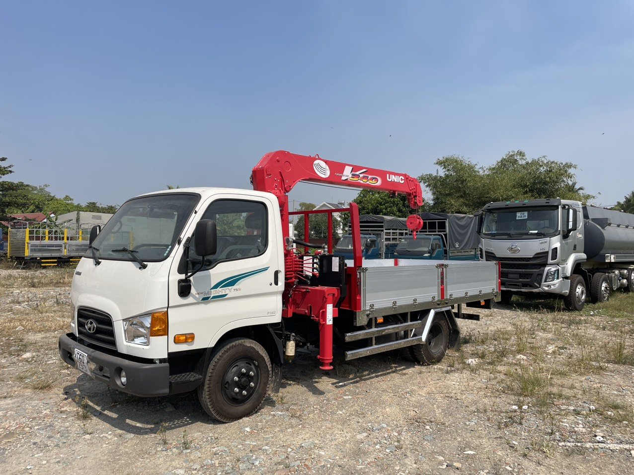 Cẩu Tự Hành 3 Tấn 4 Khúc (Unic 344K) Trên Xe Hyundai Mighty 75S. Tăng Cường Sức Mạnh Công Việc Với.