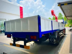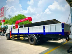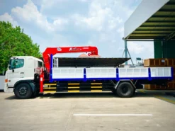 CẨU TỰ HÀNH 5 TẤN 5 KHÚC GẮN TRÊN XE HINO FG8JT8A 8 TẤN có khung sườn chắc chắn, không bị rỉ sét, bền bỉ với thời gian. Xe được trang bị động cơ Euro 5, động cơ mạnh mẽ, tiết kiệm nhiên liệu, thân thiện với môi trường. Xe có thùng lớn nên chuyên chở được nhiều loại hàng hóa khác nhau kể cả những đồ cồng kềnh. Chính vì vậy, xe được rất nhiều khách hàng tin tưởng lựa chọn.